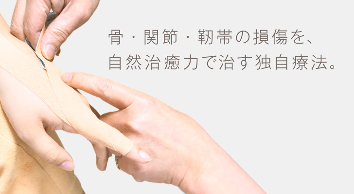 骨・関節・筋・腱・靭帯などが、骨折・脱臼・捻挫・挫傷(肉離れ)・打撲などの損傷を受けた際に、人間の持つ自然治癒能力を最大限に引き出して治す日本独自の療法です。手術をしない非観血的療法という独特の手技で整復や固定を行います。