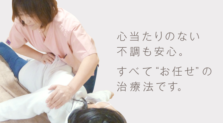 体の痛みや不調・不快を抱える箇所がある場合、その箇所もしくは全身を診て原因を判断し、